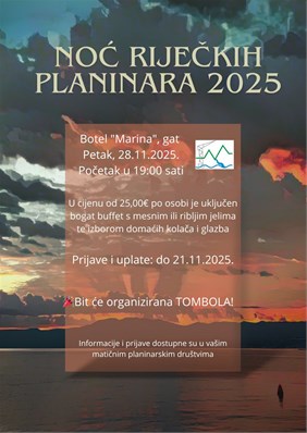 Ovaj posebni susret planinara i ljubitelja prirode održat će se u petak, 28. studenoga 2025. godine, s početkom u 19:00 sati, na našem jedinstvenom riječkom plovećem hotelu.