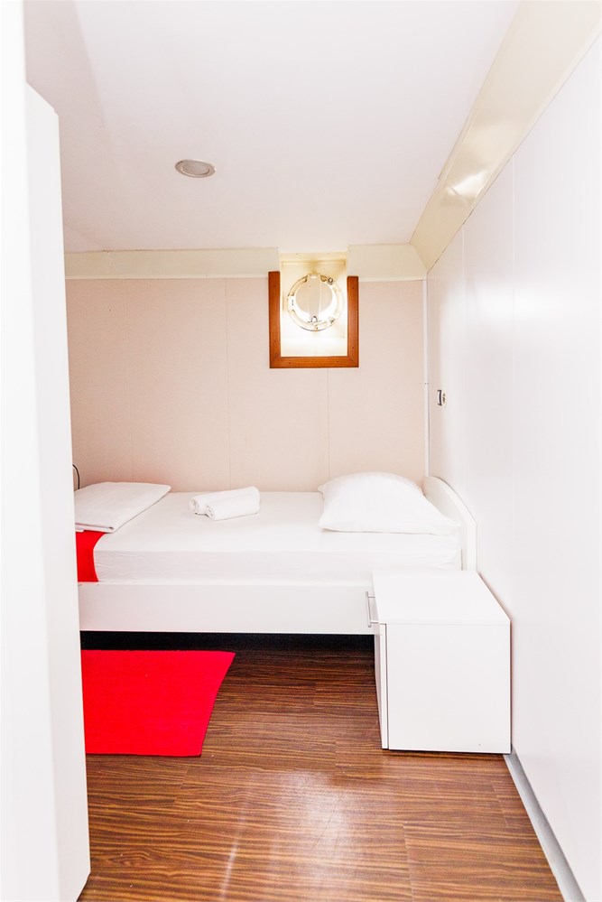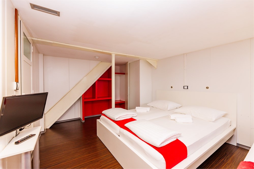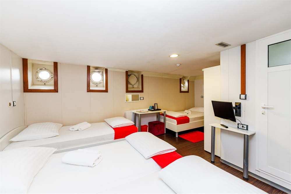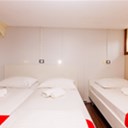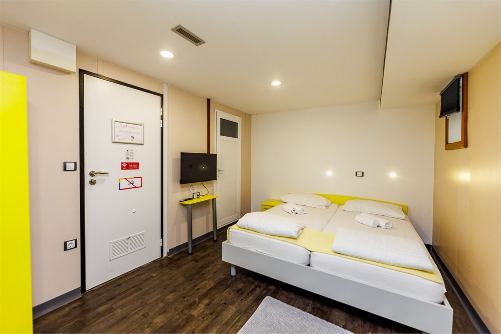 Perfect for families or small groups, our quadruple family room offers spacious and functional accommodation in Rijeka, ideal for seaside holidays and discovering the Kvarner region. Located aboard a unique floating hotel in Rijeka, the room includes four comfortable beds, private bathroom, air conditioning, heating, free WiFi, and a view through a real ship’s porthole. The bed and breakfast accommodation includes a buffet breakfast served daily at Botel Marina's restaurant. Guests enjoy 24/7 reception, daily room cleaning, parking on request, and an optional baby cot. This room perfectly combines hotel comfort with nautical charm, right in the city center.