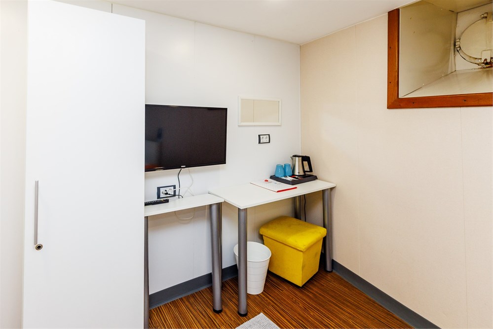 Our single room is the perfect choice for business travellers, solo adventurers, or guests seeking efficient and comfortable accommodation in Rijeka. Located aboard Botel Marina – a unique boat hotel in the heart of Rijeka, the room features a single bed, private bathroom with shower, free WiFi, work desk, air conditioning, heating, and a signature view through a real ship’s porthole. This is a non-smoking room, and guests have access to 24/7 reception, daily cleaning, breakfast included in the price, and parking on request. Special offer for corporate clients: Botel Marina offers the possibility of corporate rate agreements for businesses, travel agencies, and long-term partners operating in Rijeka or the Kvarner region – ideal for business travel, conferences, expos or field work.