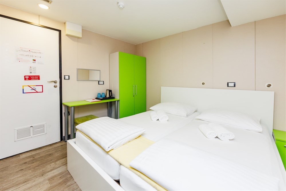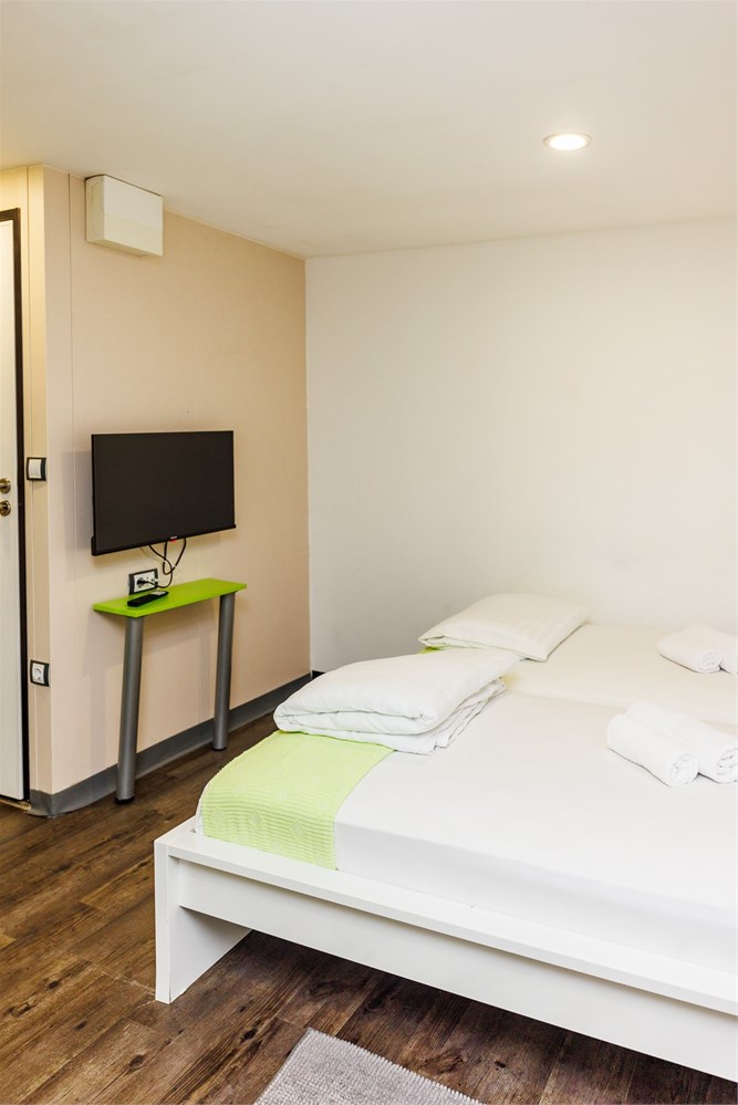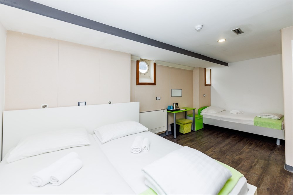 Dobrodošli u našu prostranu trokrevetnu sobu u Botelu Marina, unikatnom hotelu‑smještaju u srcu Rijeke na obali Kvarnera. Ovaj šarmantni smještaj nudi udobnost i autentičan brodski ugođaj: tri kreveta, namještaj rađen po mjeri, potpuno opremljena kupaonica, klimatizacija, grijanje, besplatan WiFi te pogled kroz pravi brodski prozor. Soba je nepušačka, s posteljinom i ručnicima uključenima u cijenu. Usluga smještaja s doručkom uključuje buffet doručak svako jutro u restoranu Botela Marina. Gosti imaju 24‑satnu recepciju, čišćenje sobe, pristup parkingu (uz najavu), mogućnost dodatnog dječjeg krevetića ako putujete s djecom, kao i pristup sadržajima koji nude spoj hotelijerskog servisa i neformalnosti hostela na brodu.